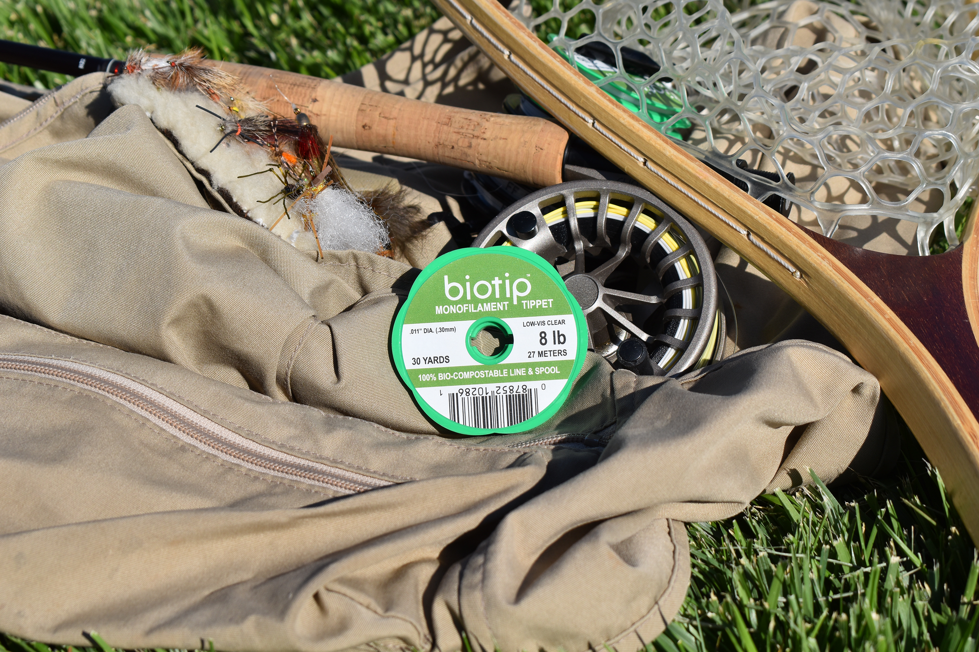 Biotip is made from a proprietary polymer designed to biodegrade and/or compost safely in the environment. In other words, our "secret recipe" for fishing line is made of good stuff! Fly fish with Biotip and you won't know the difference - but the planet will!